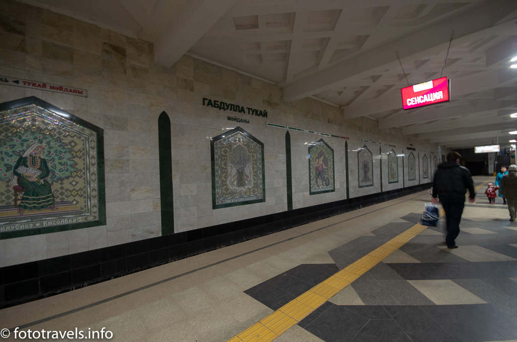 Далее в нашей программе значится главная достопримечательность города – Казанский кремль. Поскольку улица Баумана достаточно длинная, а мы как раз добрели до площади Г. Тукая, прогулку до кремля решаем продолжить на метро. До Кремлевской ехать всего одну станцию и все же интересно посмотреть Казанское метро, ведь этот вид транспорта тоже в своем роде достопримечательность.