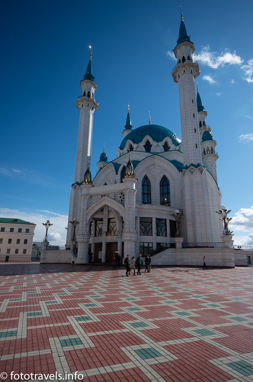 Надо сказать, что Казанский кремль – это воплощение двух культур и двух религий – мусульманской и христианской. Впрочем, это, пожалуй, касается не только кремля, но всего региона. Далее мы увидим как соседствуют (вполне мирно и гармонично) мусульманский и православный храмы. В этом смысле Казань чем-то напоминает Стамбул, хотя, конечно, сравнивать эти два мегаполиса не совсем корректно. но некоторое сходство, особенно в части смешения культур определенно усматривается. Характерным примером служит соседство величественной мечети Кул Шериф и Благовещенского собора. Мечеть Кул Шариф безусловный фаворит современного Казанского кремля, хотя и построена она сравнительно недавно.